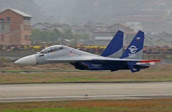 資料圖:俄軍戰(zhàn)機表演低空貼地通場