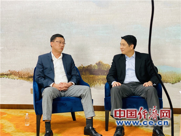 圖為國藥器械總經理李楊(左)和GE醫(yī)療中國總裁兼CEO張軼昊接受經濟日報-中國經濟網記者采訪
