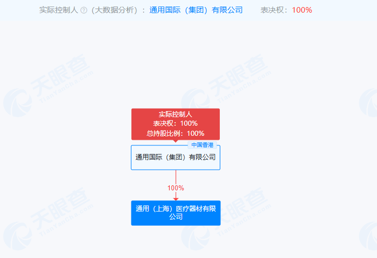 據天眼查,通用(上海)醫療器材有限公司成立于1996年,系通用國際(集團)有限公司全資子公司。