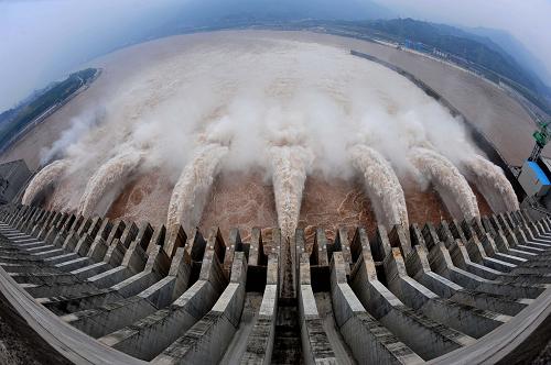 2008年8月13日,長江入汛以來的最大一次洪水順利通過三峽工程向中下游推進,中下游水位持續(xù)上漲,三峽工程運行正常。2009年汛期,三峽水庫的防洪庫容已達146億立方米,開始發(fā)揮攔洪調(diào)峰和枯水期給下游補水的功能,下游荊江河段防洪標準已從十年一遇提高到了近百年一遇,長江中下游的防洪體系初步形成。新華社記者杜華舉攝