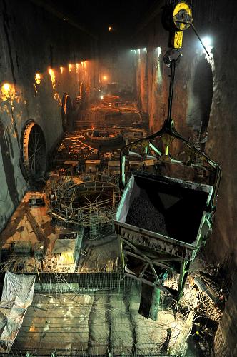 正在建設(shè)中的三峽工程地下電站內(nèi)景(2009年3月26日攝)。目前,三峽工程的樞紐和輸變電工程已基本完工,運行平穩(wěn),綜合效益日益顯現(xiàn)。2009年6月30日,三峽電站26臺機組首次實現(xiàn)全部同時并網(wǎng)發(fā)電。