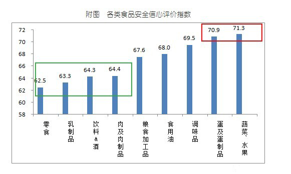 總體來看,2012年市民對食品安全評價信心指數得分為66.2,比較有信心,相比2011年的46.9,消費者對食品安全現狀評價有所提升。