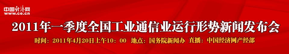 國新辦定于2011年4月20日(星期三)上午10時在國務院新聞辦新聞發布廳舉行新聞發布會,請工業和信息化部黨組成員、總工程師朱宏任介紹2011年一季度全國工業通信業運行形勢,解讀當前工業、通信業領域熱點難點問題,并答記者問。中國經濟網直播,敬請關注!