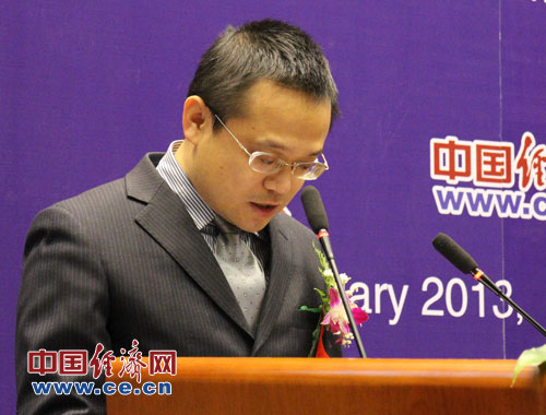 中國科學(xué)院預(yù)測科學(xué)研究中心1月26日(周五)在北京中科院數(shù)學(xué)與系統(tǒng)科學(xué)研究院舉辦“2013年中國經(jīng)濟(jì)預(yù)測發(fā)布與研討會”。圖為科學(xué)出版社經(jīng)濟(jì)管理出版分社社長陳亮致辭。中國經(jīng)濟(jì)網(wǎng)楊瀟/攝影